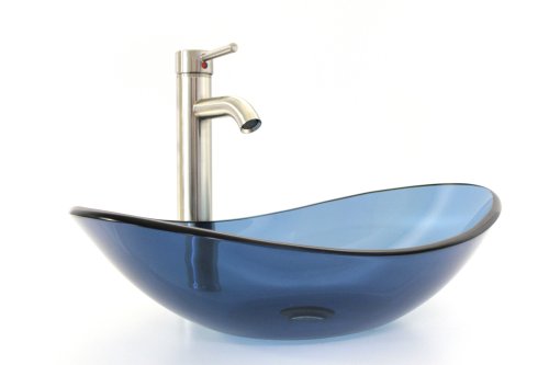 1/2" Thickness Bathroom Clear Blue Oval Style Glass Vessel Sink Combo with Brushed Nickel Finish Faucet & Brushed Nickel Finish by Nayasen
